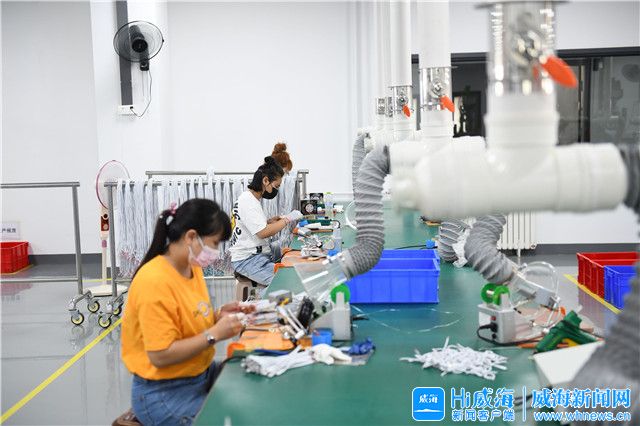 森淋木電子科技有限公司生產(chǎn)車間內(nèi)員工做好個(gè)人防護(hù)。Hi威海客戶端記者 王文欣 攝