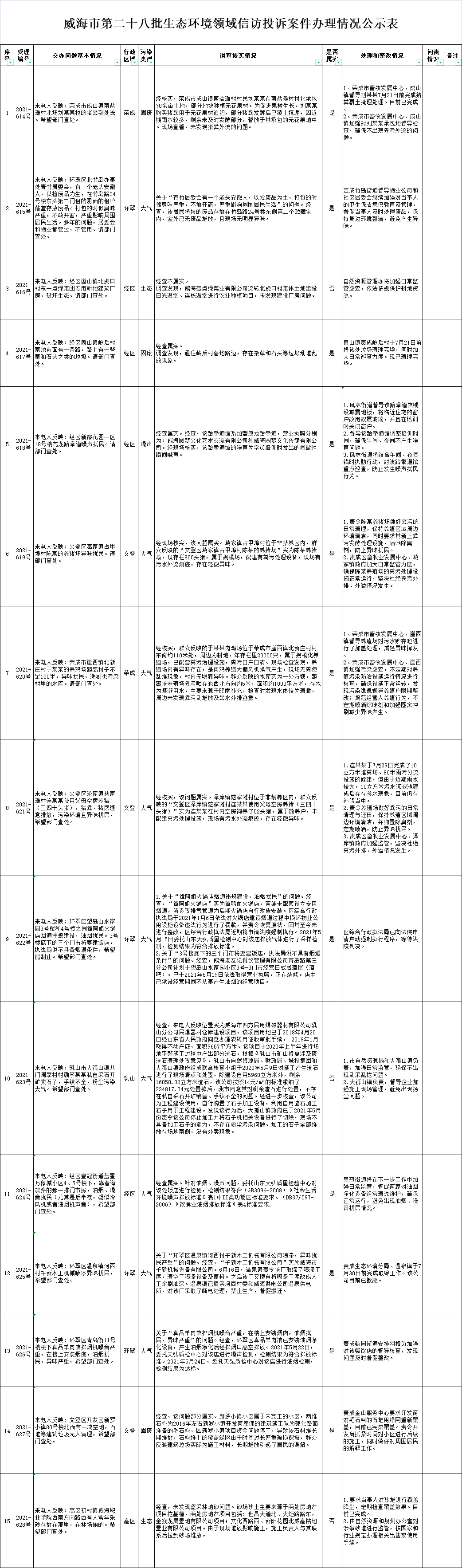 威海市生態(tài)環(huán)境領(lǐng)域信訪投訴案件及邊督邊改公開情況(第二十八批)