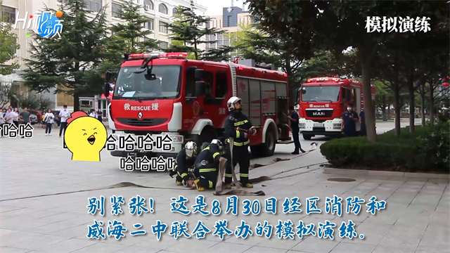 ??????8月30日,威海經區消防救援大隊利用新生開學之際,到威海二中開展消防演練及安全知識培訓活動。