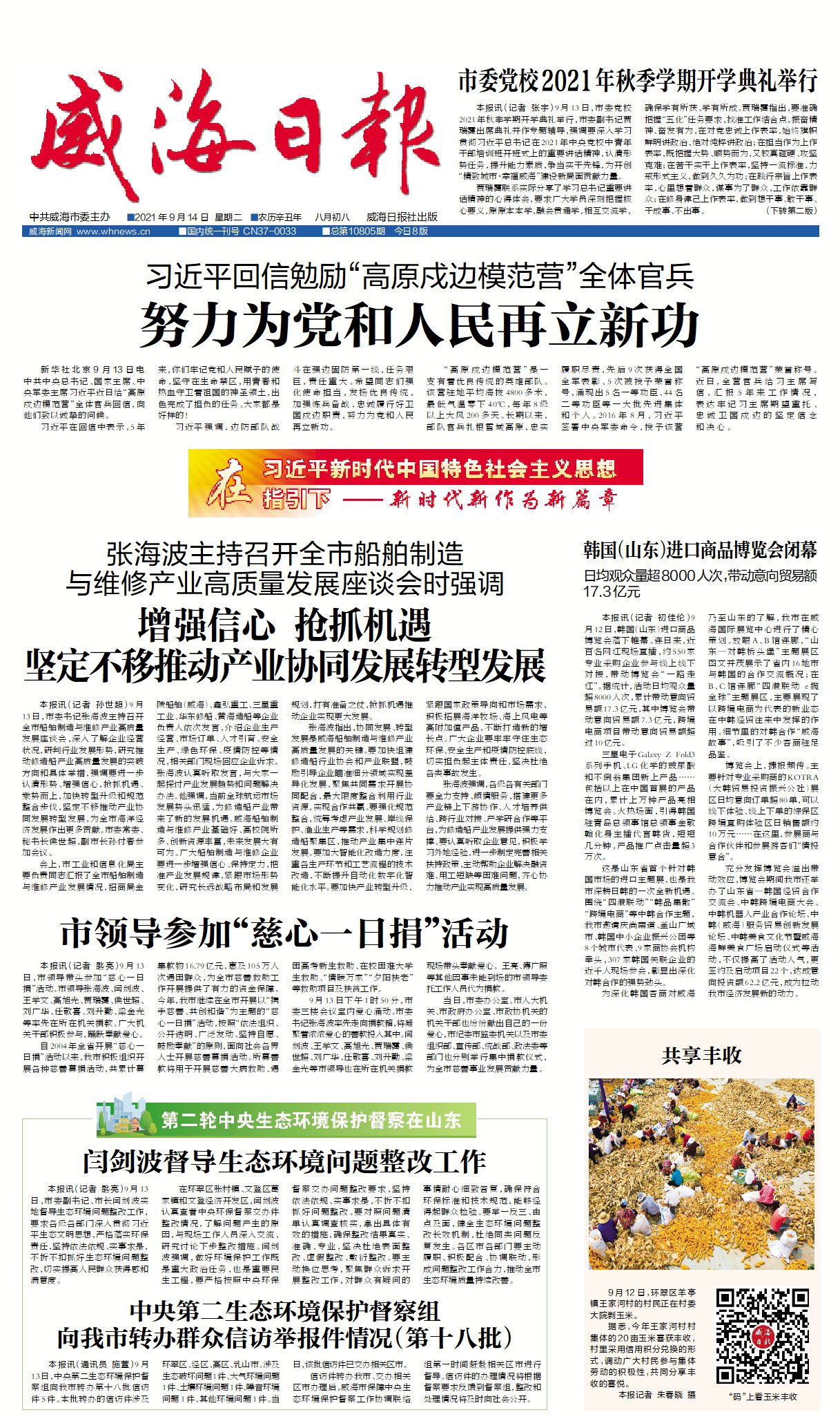 威海日?qǐng)?bào) 2021-09-14