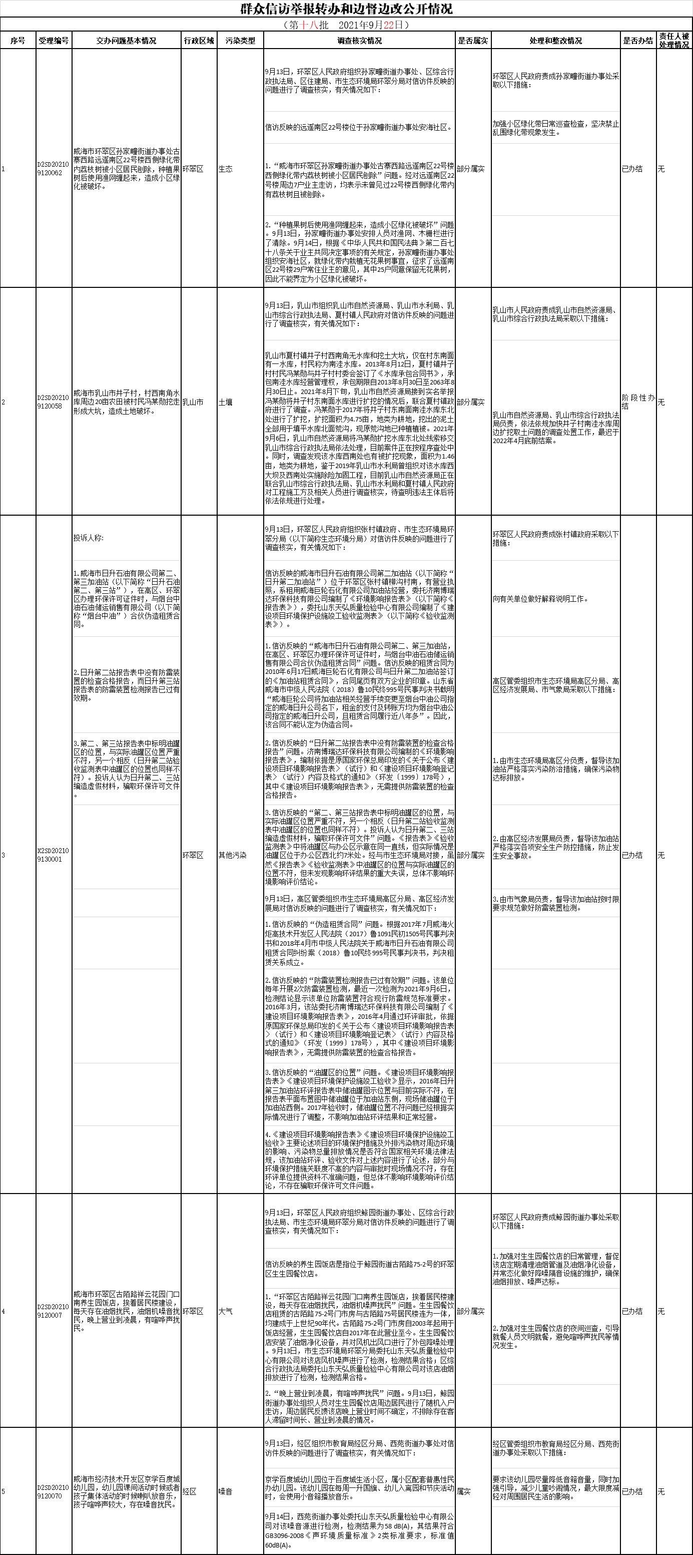 ??????中央第二生態(tài)環(huán)境保護(hù)督察組向我市轉(zhuǎn)辦第十八批信訪舉報(bào)件共計(jì)5件(其中來(lái)電4件,來(lái)信1件)。截至9月22日,已辦結(jié)4件,階段性辦結(jié)1件。現(xiàn)予以公開(kāi)。