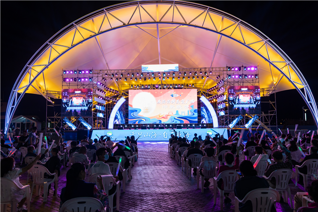 ??????9月21日晚,由威海市文化和旅游局、威海文旅發(fā)展集團(tuán)有限公司主辦的威海海鮮美食廣場(chǎng)中秋晚會(huì)在劉公島碼頭拉開帷幕。舞蹈《嫦娥奔月》街舞《登月》、歌伴舞《月半小夜曲》、歌曲《山海在路上》等十幾個(gè)節(jié)目輪番上陣,晚會(huì)上市民、游客共同享受著中秋闔家團(tuán)圓時(shí)刻,共同欣賞一輪明月當(dāng)空照的美好景象,在熱鬧的氛圍中廣場(chǎng)上充滿著團(tuán)聚的喜悅與歡聲笑語(yǔ)。