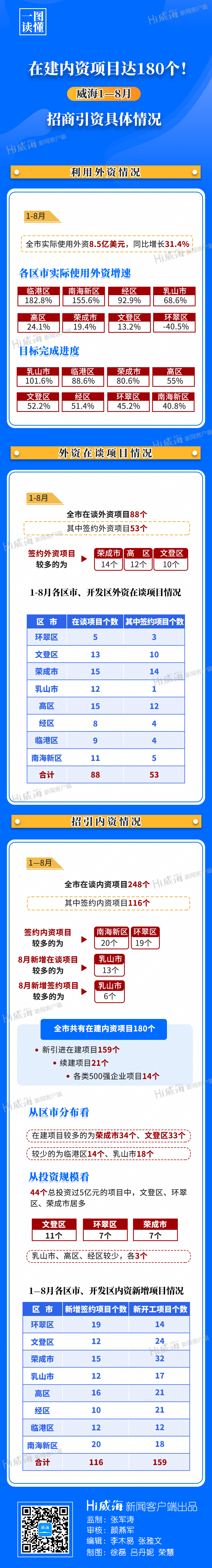 一圖讀懂丨在建內資項目達180個!威海1—8月招商引資具體情況