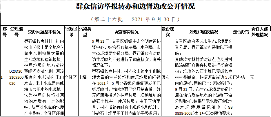 中央第二生態環境保護督察組轉辦信訪舉報件辦理情況(第二十六批)