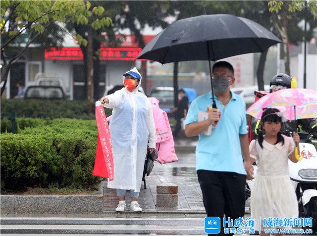 ??????國慶假期,每天早晚,穿戴好印有“威海志愿者”字樣的馬甲、帽子,拿上“請文明出行”旗子和警示哨,經開區志愿者陳錫云都會出現在他的“工作地點”——青島路長峰崗,引導車輛、行人文明出行。