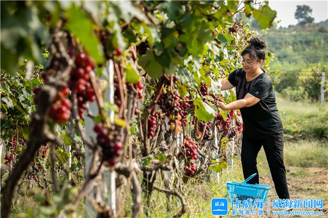 ??????“在挑選葡萄時,仔細看一下葡萄的顏色、顆粒飽滿度。”“巨峰葡萄的口感屬于酸甜口,紅玫瑰葡萄的甜度比巨峰葡萄大……”在陪伴游客采摘過程中,宋淑華一直沒閑著,她教游客如何挑選葡萄,并介紹葡萄品種間的口感差異。