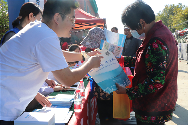 ??????在橋頭鎮(zhèn)大集上,醫(yī)保工作人員就群眾關(guān)心的居民醫(yī)保、“威你保”進行面對面宣講,貼心地為村民送上居民醫(yī)保小冊子和購物袋。不僅如此,醫(yī)務(wù)人員還為前來咨詢的村民提供測量血壓、疾病咨詢、指導(dǎo)用藥等服務(wù)。活動現(xiàn)場,人頭攢動,前來咨詢問診的村民絡(luò)繹不絕。