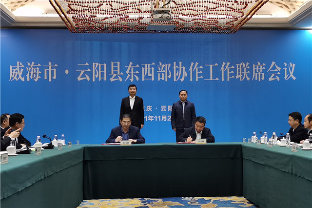 ??????會上,云陽縣委副書記韋純友介紹了東西部協作等方面取得的新成績和云陽縣經濟社會發展的新變化。威海市與云陽縣簽署了“十四五”東西部協作框架協議,環翠區與巴陽鎮、文登區與普安鄉、榮成市與清水土家族鄉、乳山市與紅獅鎮分別簽署了“十四五”東西部協作框架協議。