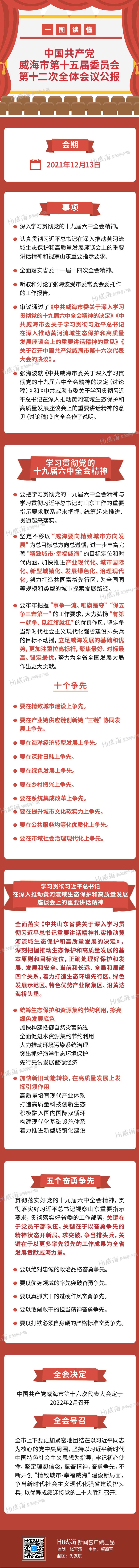 一圖讀懂中共威海市委十五屆十二次全體會議公報
