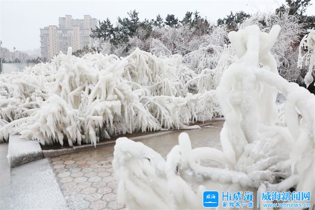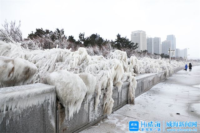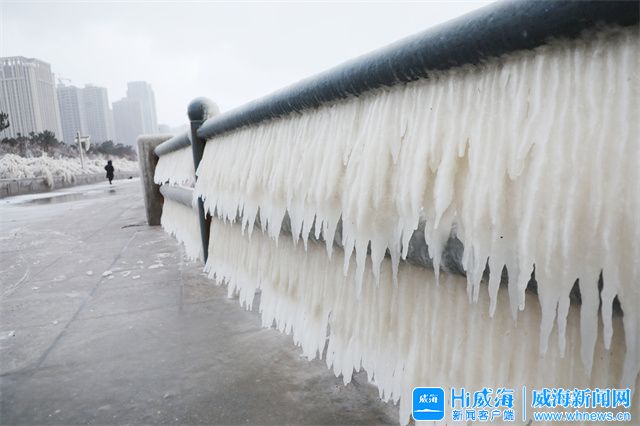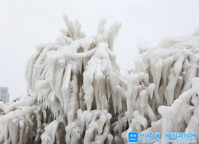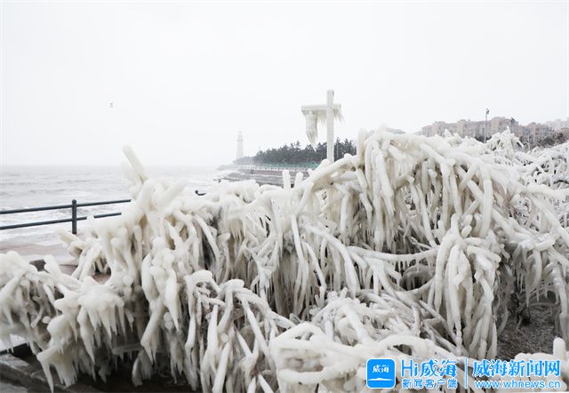 ??????受強冷空氣影響, 12月25日,威海公園海邊出現了冰凌,冰凌晶瑩剔透,美不勝收,快來欣賞。