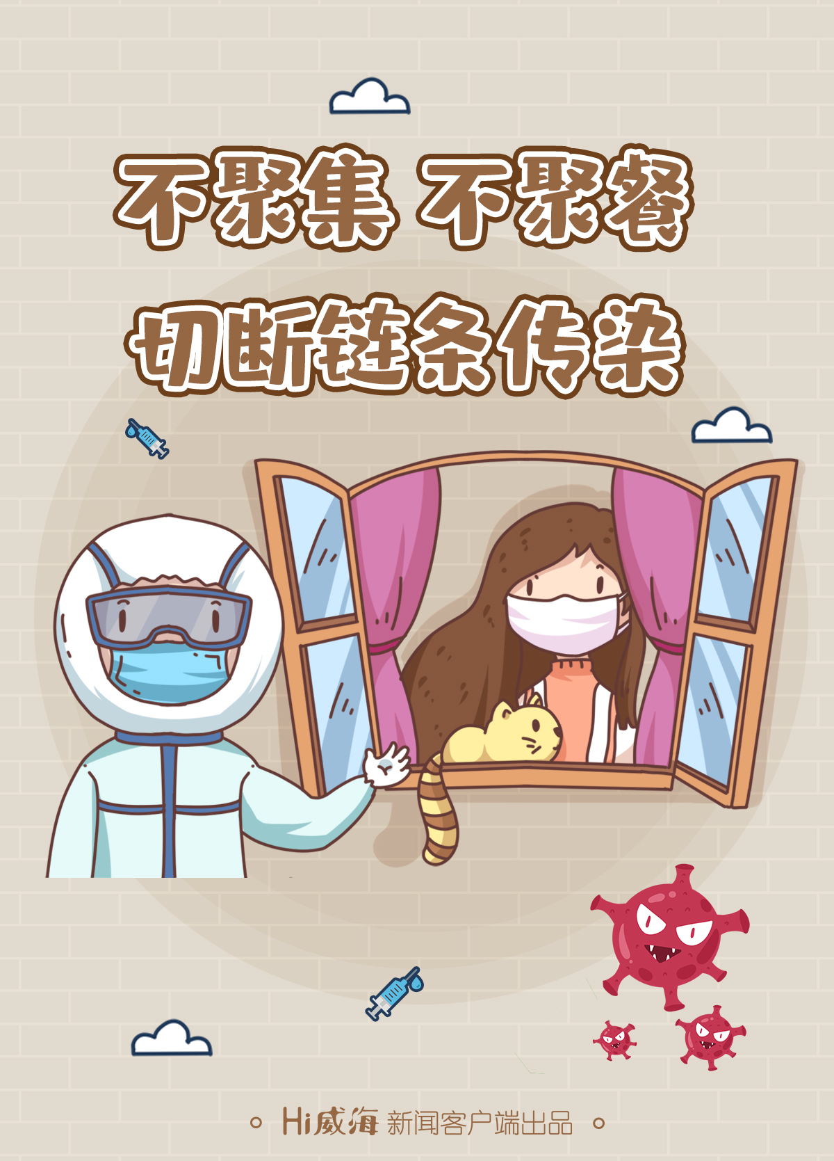 ??????五、做好自我健康監(jiān)測。密切關(guān)注自身及家人的身體狀況,特別是家中有外地返威的學(xué)生、親友等,一旦出現(xiàn)發(fā)熱、咳嗽、乏力、腹瀉等癥狀,請佩戴口罩及時到就近的正規(guī)醫(yī)療機構(gòu)發(fā)熱門診就診,就診過程中盡量避免乘坐公共交通工具。