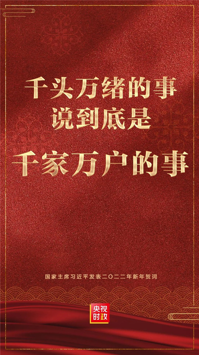 ??????新年前夕,國家主席習近平通過中央廣播電視總臺和互聯網,發表了二〇二二年新年賀詞。