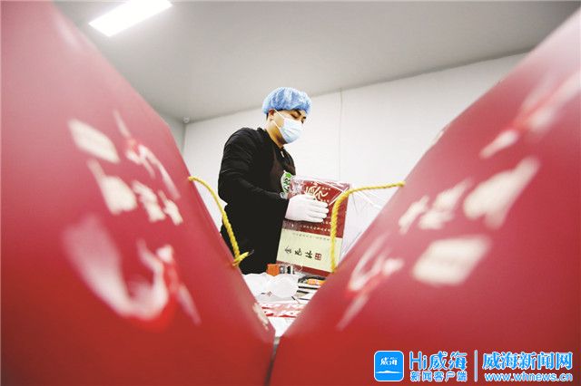 ??????面點間里,工人們還在忙碌著;直播間里,主播開始了一天的直播;園區里,物流車將一箱箱花餑餑禮盒裝車、運走……威海花餑餑,正在走向全國各地,為虎年春節增添幸福美味。(Hi威海客戶端記者 李林/文 姚威/圖)