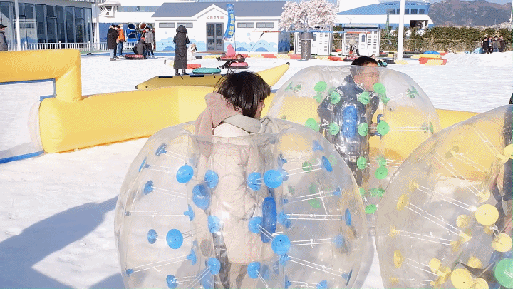 ??????如果打雪仗打不過小孩子,那快加入雪地滾筒的行列,一起相互碰撞,體驗失重與旋轉的雙重刺激。成年人,這個項目再輸你就真的沒“救”了。