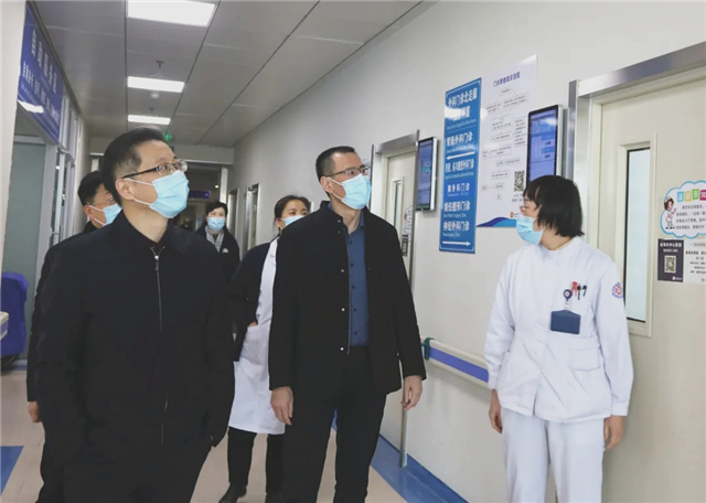 1月30日上午,威海市中心醫(yī)院黨委書記鄒東明、院長隋海明帶領(lǐng)部分班子成員和相關(guān)職能科室負(fù)責(zé)人,來到發(fā)熱門診、急診科、門診、醫(yī)技等部門走訪慰問了堅(jiān)守在一線崗位的醫(yī)護(hù)人員,向大家致以誠摯問候和新年祝福。