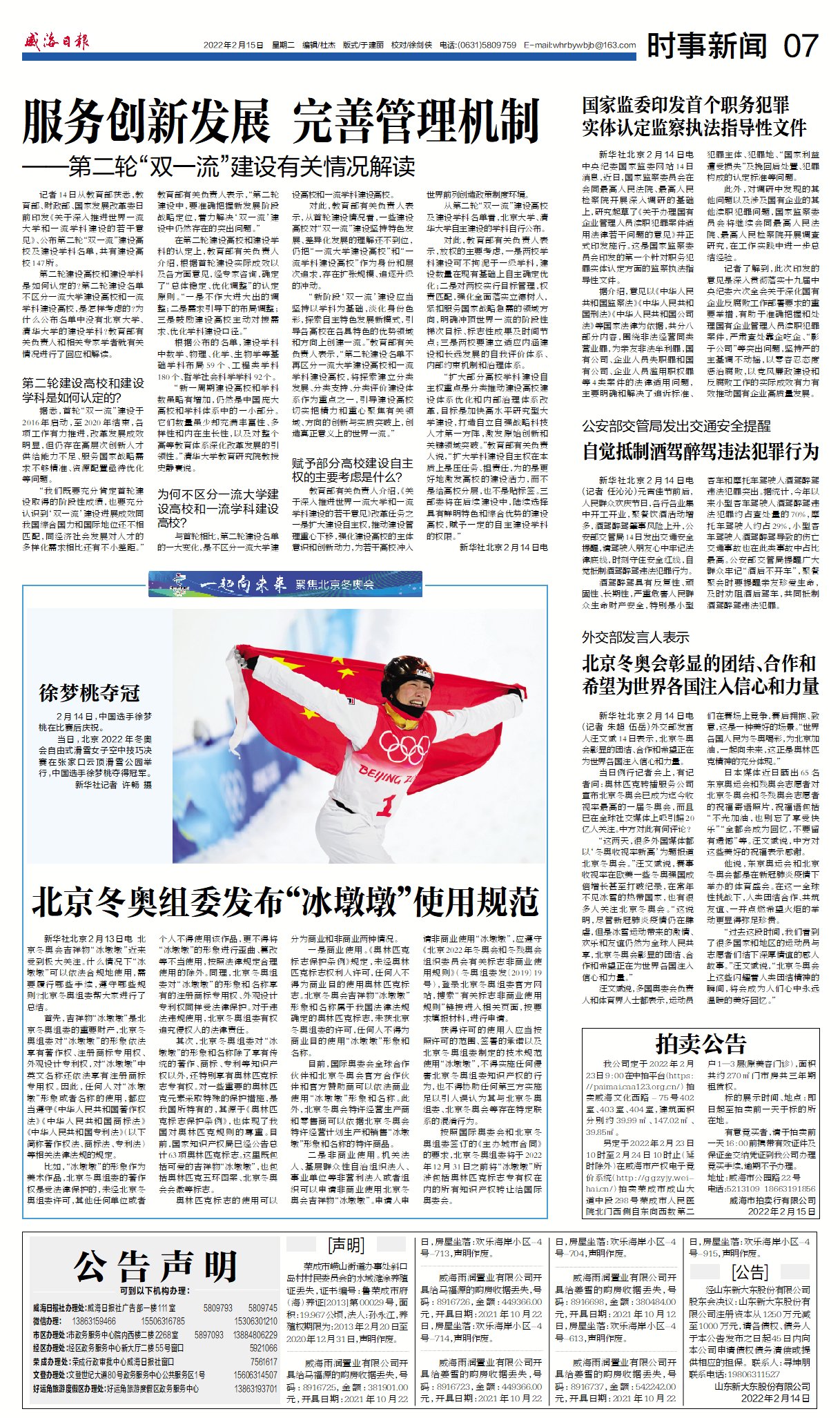 2022-02-15 編輯: 威海新聞網(wǎng)·Hi威海新聞客戶端
