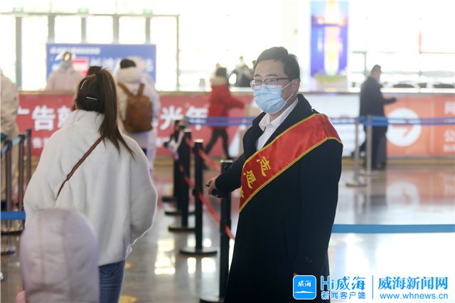 ????威海站出站口,懸掛在一旁的威海交通場站黨支部黨員應急先鋒隊旗幟引人注目。這支由黨員為主組成的應急先鋒隊,不間斷為旅客提供疫情檢查、志愿幫扶等各項服務。