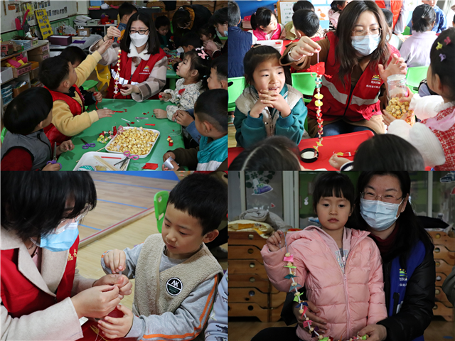 ??????在一方幼兒園,志愿者們和孩子們一同體驗(yàn)剪紙、穿龍尾、吃炒豆等傳統(tǒng)習(xí)俗文化。將彩色布條剪成銅錢般大的布片搭配好,用針線將剪好的“龍頭”、彩色布片以及爆米花穿起來,末端系上彩色流蘇,再穿上剪紙做的“龍衣”,一條“龍”就做好了。孩子們可以將龍尾戴在肩上,寓意驅(qū)邪保佑身體健康,祈盼學(xué)業(yè)上進(jìn)。在志愿者們手把手教學(xué)下,一條條色彩絢麗的龍尾、一張張精致漂亮的剪紙誕生在孩子們的巧手下,孩子們吃著爆米花和炒豆,歡笑之間寄托了對美好生活的無限期盼,更是滿滿的愛和祝福。通過活動(dòng)豐富了孩子們的精神文化生活,讓孩子們在動(dòng)手實(shí)踐中享受傳統(tǒng)民俗文化的樂趣,進(jìn)一步體會了傳統(tǒng)文化的豐富內(nèi)涵和傳承意義。