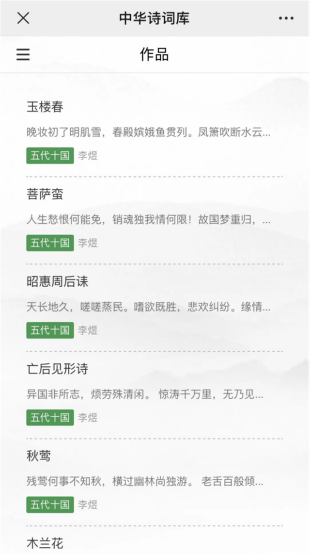 ????平臺全面整合了各個朝代從周、秦漢、三國、晉、南北朝、隋、唐、五代、宋、金、元、明清、現代等不同朝代作者的詩詞作品。同時有專業人士、教授學者到平臺做權威的作品評析、注釋、譯文,留下最優質的內容給用戶。