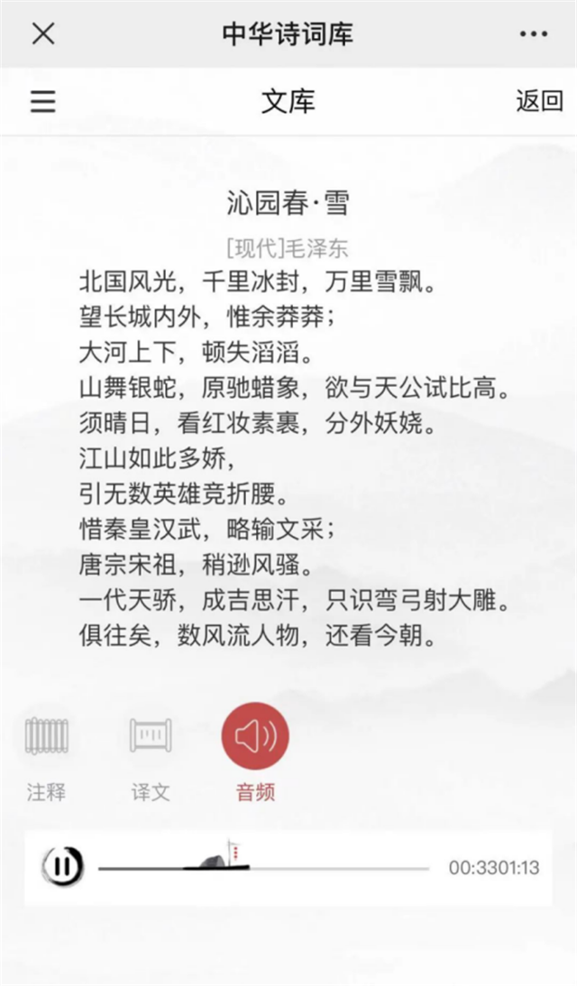 ????詩詞是中文獨有的一種文體,有特殊的格式及韻律。詩詞不僅濃縮了國家民族發展的方方面面,也概括了生活的細枝末節,是歷史的精華。