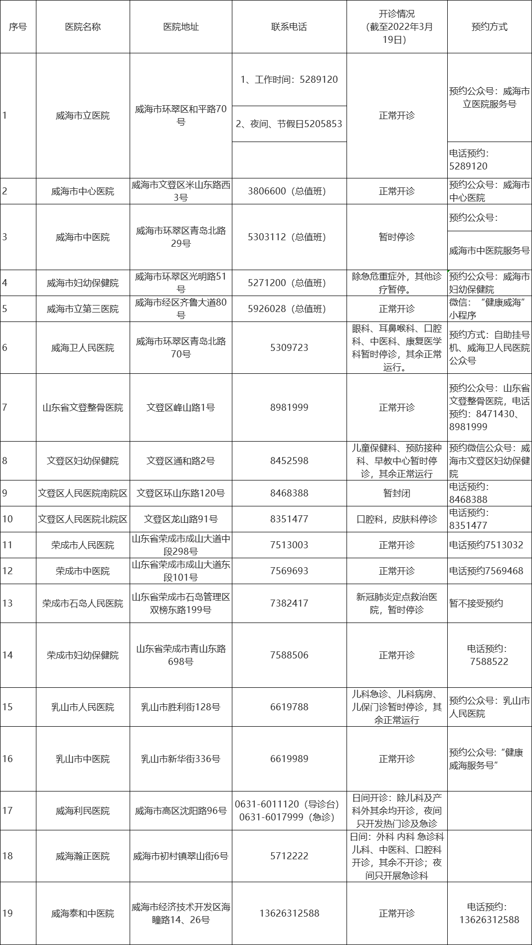 ????為切實(shí)解決本輪疫情防控及隔離、封控、管控帶來(lái)的就醫(yī)不便問(wèn)題,進(jìn)一步為廣大群眾提供更加精準(zhǔn)的就醫(yī)服務(wù)信息,市衛(wèi)生健康委調(diào)度統(tǒng)計(jì)了目前全市二級(jí)以上各醫(yī)院運(yùn)行狀態(tài),現(xiàn)將威海市二級(jí)以上綜合醫(yī)院、中醫(yī)院、婦幼保健院的開(kāi)診情況及預(yù)約方式公布如下: