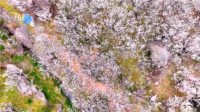 ??????四月,在文登區界石鎮新莊村,漫山遍野的櫻桃花競相盛開。