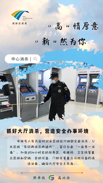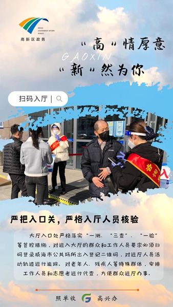 ??????政務服務中心作為服務企業、群眾的一線窗口,是疫情防控的重點區域之一。高新區行政審批服務局科學籌劃、精準施策,在筑牢疫情防控的安全防線、落實落細疫情應急處置和常態化防控各項措施同時,多措并舉熱情服務好辦事企業和群眾,確保政務服務不打烊、為民服務不間斷。