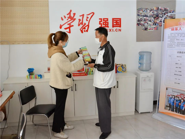 在另一場“學習強國”積分兌換活動中,文昌社區居民也來到社區“學習強國”積分兌換處,憑著積分兌換相應物品。