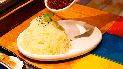 店里追求把每一道菜品做到極致,在這里可以吃到最細的土豆絲,上萬元設備切制的土豆絲細而不碎,根根分明,澆上香噴噴的辣椒油,解膩又上癮。