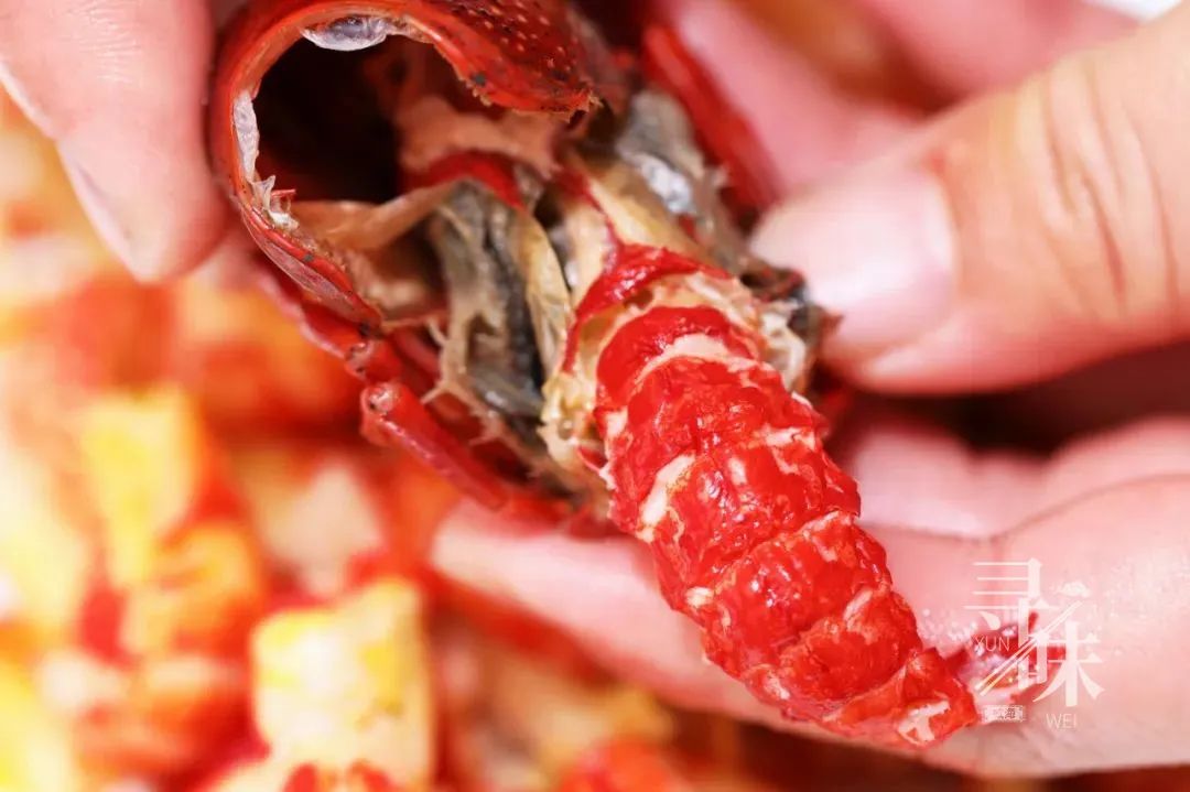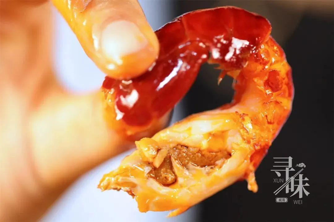 吃一口蝦肉,吸一口蝦黃,金黃色的蝦腦淌著紅油,白嫩嫩的蝦肉Q彈緊致,放進嘴里,再嗦上一口蝦殼里的鮮辣湯,簡直欲罷不能,當真是過癮。