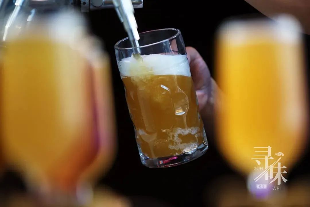 冷榨蘋果汁在加壓的二氧化碳中充盈著氣泡的口感,水蜜桃小麥果酒是期待中沁入心脾的清甜,櫻桃喜打的味道和顏色一樣靚麗驚艷,還有藍莓、桃子、百香果口味等果酒……這些“少女口感”的精釀果香濃郁,酒味不烈,哪怕是“酒場小白”,也可以約上三五小姐妹,小酌一杯。