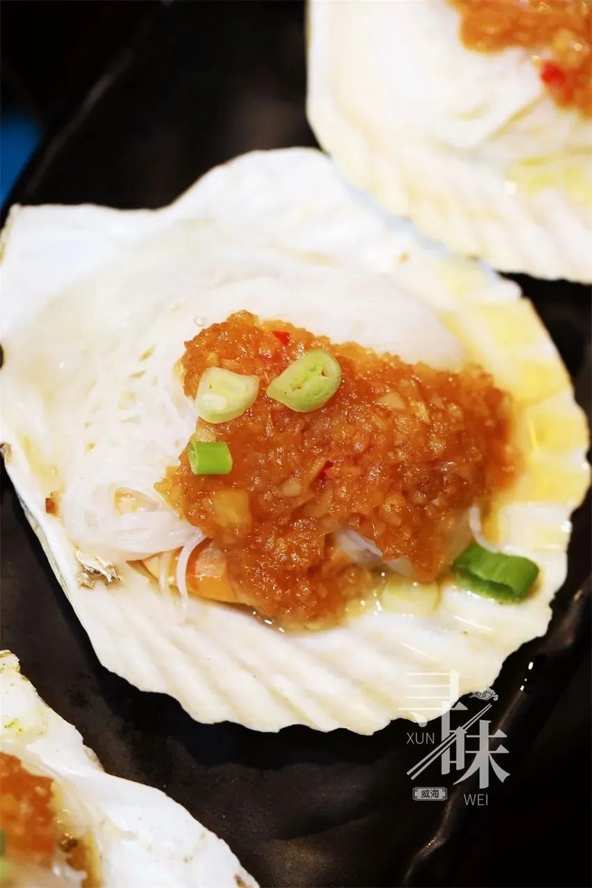 蒜蓉粉絲貝選用個頭超大的蝦夷扇貝,鋪上粉絲,加以蒜泥,蒜香、貽貝、粉絲一口咬下去,是爆汁的滿足感。