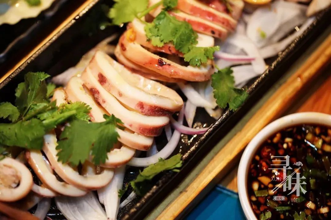 高端的食材,往往只需要最簡單的烹飪方式。足夠新鮮的魷魚才能經得起整只清蒸的烹飪考驗,加以特制鮮料或者辣根,鮮味單一但不匱乏。