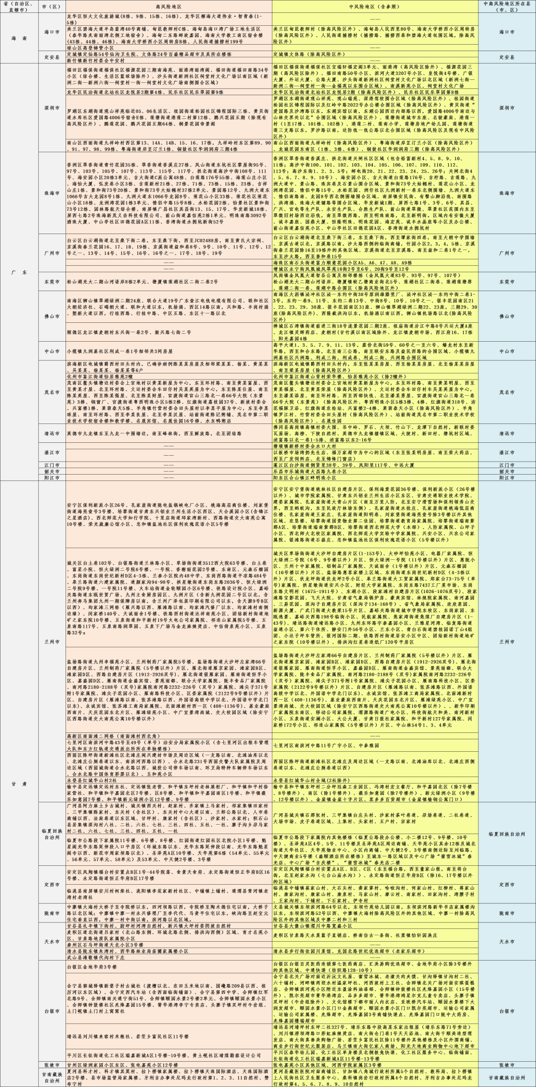 中高風險地區、所在縣(市、區)
