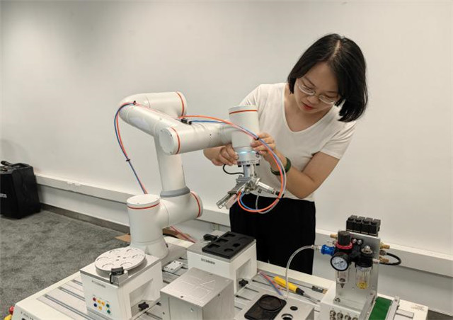 學(xué)員在蘇州參觀協(xié)作機器人研發(fā)。