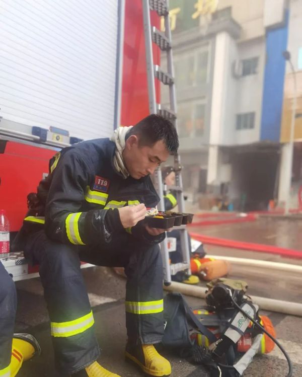 “‘馬哥’當時太累了,又熱得遭不住,上衣解開后,整個人直接癱坐在地上,我拿給他盒飯,他說吃不下,等會兒再吃。”但是,隨手放在一旁的盒飯,在“馬哥”主動替換隊友,進入火場偵查后,就再也沒有等到它的主人。