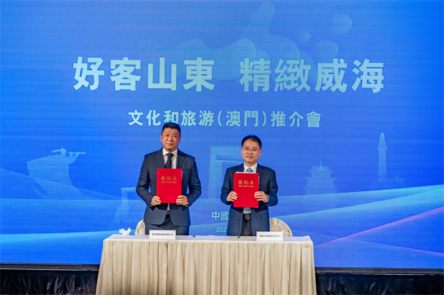 ??????現(xiàn)場(chǎng),威海文旅發(fā)展集團(tuán)有限公司與澳門匯彩控股有限公司、澳門大橋科技有限公司簽署戰(zhàn)略合作框架協(xié)議,就未來聯(lián)合旅游宣傳推介、開發(fā)景區(qū)場(chǎng)館互動(dòng)體驗(yàn)系統(tǒng),開展展陳互展、人才交流等方面達(dá)成合作共識(shí)。