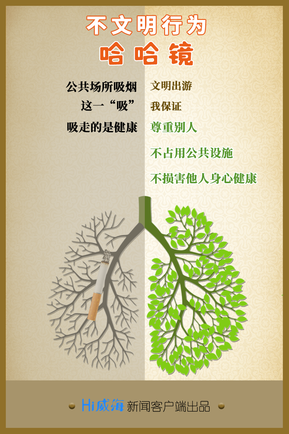 ??????無(wú)論何時(shí)無(wú)論身處何地都請(qǐng)記得講文明、樹新風(fēng)、傳播正能量,莫讓不文明行為毀了你的“顏值”。(Hi威海客戶端記者 蔡壘/文 畢琛/設(shè)計(jì))