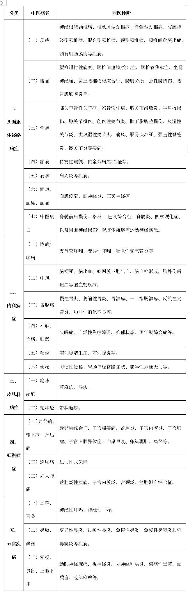 ????????(二十一)開設(shè)“中醫(yī)日間病房”。在開設(shè)“中醫(yī)日間病房”的醫(yī)療機(jī)構(gòu),對(duì)符合住院條件且不需非治療期間在院的以針灸治療為主的病人,在當(dāng)日治療結(jié)束后,根據(jù)自身情況經(jīng)醫(yī)療機(jī)構(gòu)允許后回家,床位費(fèi)和護(hù)理費(fèi)按照30%收取。“中醫(yī)日間病房”21個(gè)中醫(yī)針灸類病種見下表。