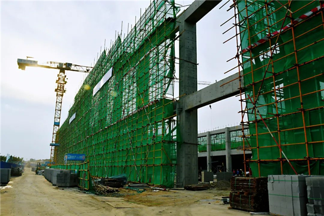 ??????走進時下的威海南海站施工現場,處處是一片繁忙的施工景象,站房雄姿已現。在站房室內,工人們有序忙碌,進行著砌筑墻體、建設站臺以及幕墻等二次結構建設,現在工程進度已經完成了60%,預計本月15日完成全部的砌體施工。