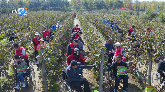 ??????10月12日上午,威海市文明辦、環翠區文明辦、環翠區殘聯、山東省調水工程運行維護中心威海分中心聯合長城愛心大本營,組織殘疾人朋友們,走進汪疃鎮桑杭埠村開展采摘體驗活動。