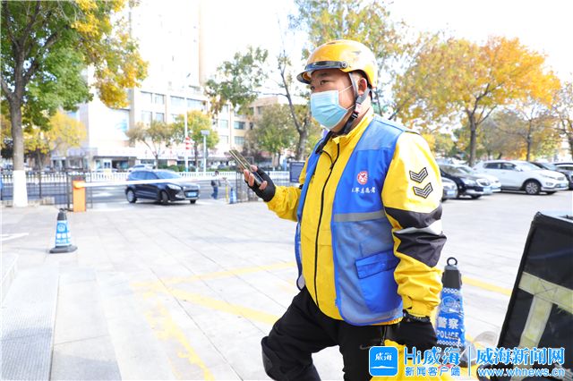 采訪王玉強的當天,正遇到環翠區鯨園街道送來了一批寫有“環翠志愿者”字樣的藍色馬甲。許多“小哥”趁著送餐間隙趕來,第一時間將藍馬甲穿在黃色外賣服的外面。“小哥”們說,少跑兩單沒關系,這份榮譽得“穿”上。