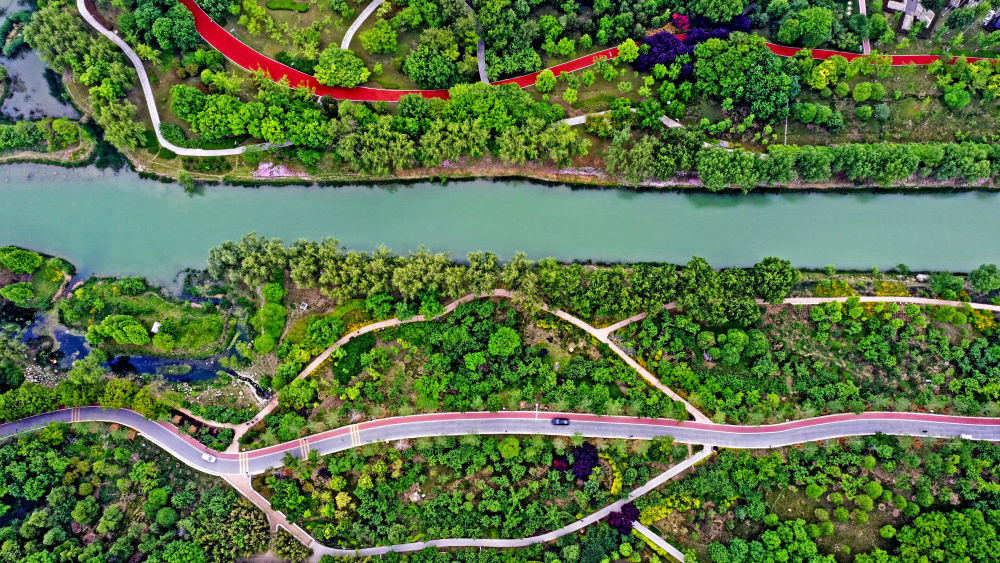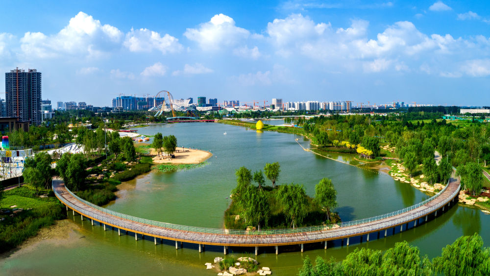 ??????↑山東省濟寧市惠河濕地景色。(來源:新華社)