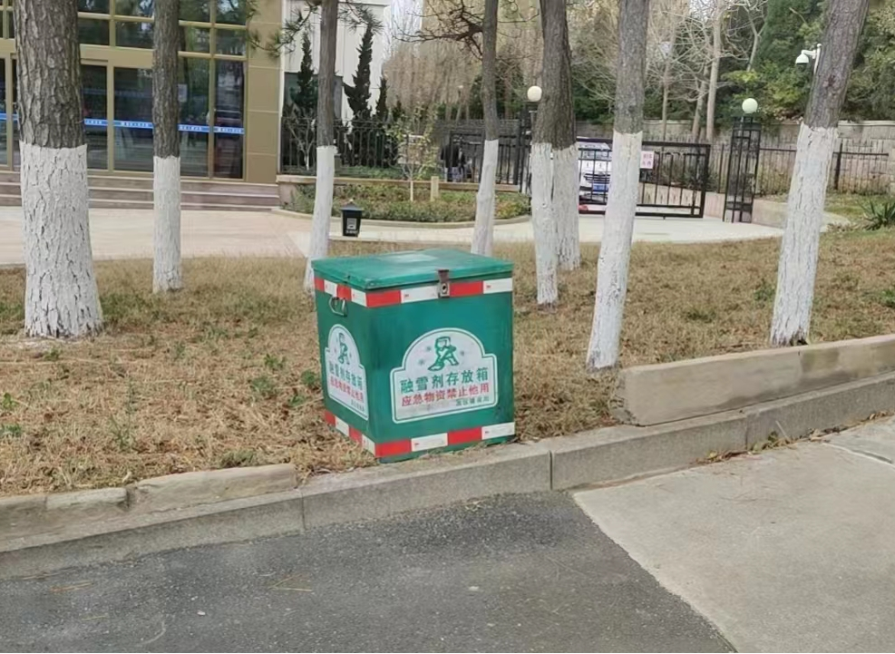 ??????據了解,制作融雪劑存放箱的材質為耐腐蝕的玻璃鋼材質,箱子容積為250升,可以儲放350公斤固體融雪劑,箱體上印有醒目的“融雪劑存放箱”字樣,高新區在城區坡道彎道等處共設置融雪劑存放箱62個,讓“小箱子”發揮“大作用”。