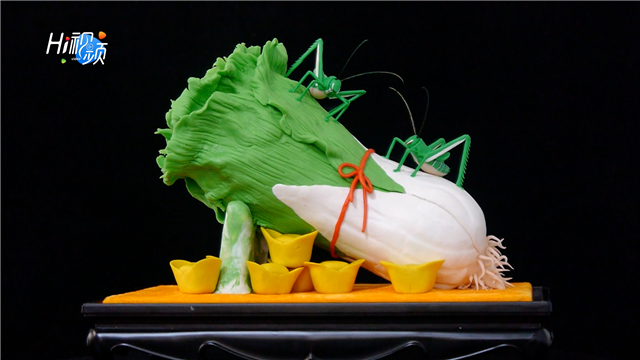 ??????乳山市民間藝術面塑作品《翡翠白菜》,生動形象,寓意招財納福,而金銀又被稱作是黃白之物,以至白菜被當成了極好的彩頭。(來源:乳山市下初鎮人民政府)