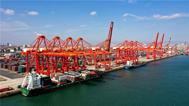 ??????高效的碼頭裝卸和不斷豐富的航線資源,為保障貿(mào)易供應(yīng)鏈、產(chǎn)業(yè)鏈暢通提供有力支撐。青島港全自動化集裝箱碼頭創(chuàng)新應(yīng)用氫動力自動化軌道吊、“5G+自動化”等前沿技術(shù),可節(jié)省人力80%以上,作業(yè)效率比國外同類碼頭高50%以上。