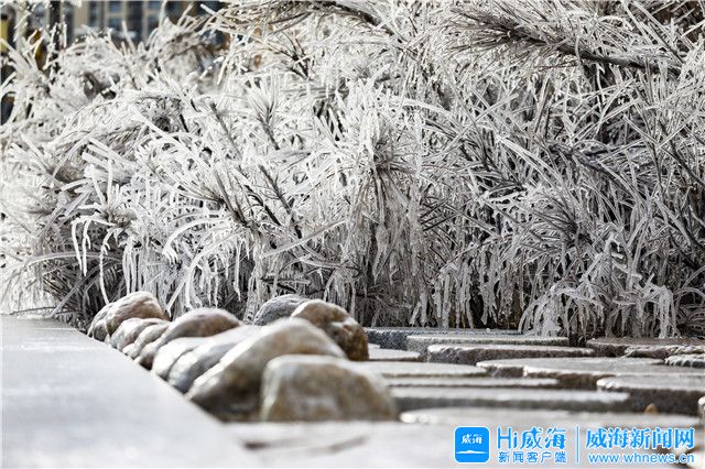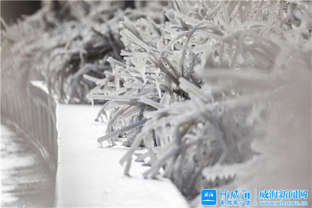 ??????在市區威海公園沿岸邊出現冰凌景觀,玉樹瓊枝,晶瑩剔透,美不勝收。
