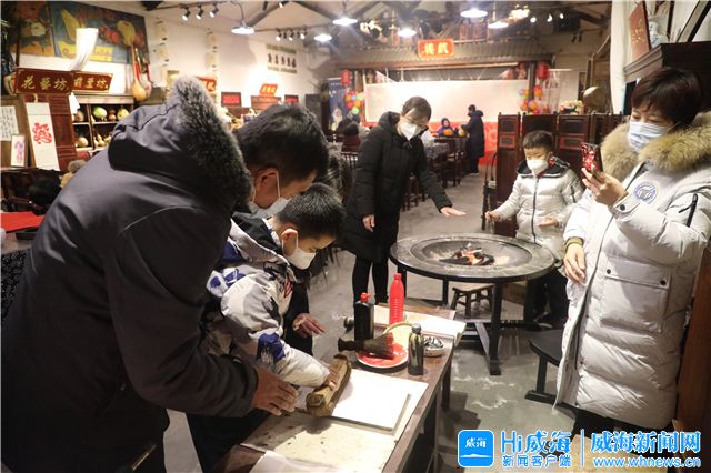 ??????“顏料不要抹太多,用刷子刷均勻,鋪上宣紙,再用刮板壓平,你看,一幅木版年畫就完成了!”1月23日傍晚,環翠區竹島街道新威附路特色街區的“吉呈軒非遺體驗基地”里,洋溢著別樣的年味。