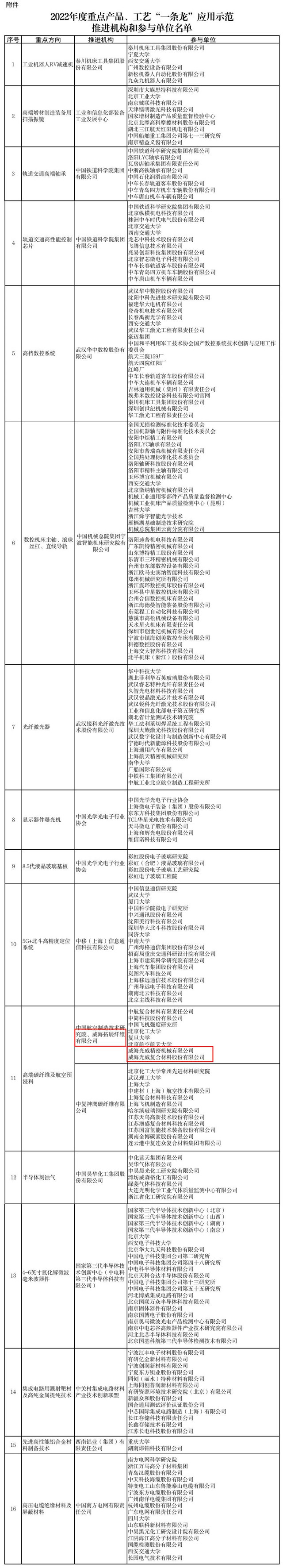 ??????重點產品、工藝“一條龍”應用示范,旨在加快推進優質基礎產品和先進工藝推廣應用,促進形成互融共生、分工合作的產業鏈協同創新格局。2022年度重點產品、工藝“一條龍”應用示范共遴選了16個重點方向,我市3家企業均入圍高端碳纖維及航空預浸料方向。