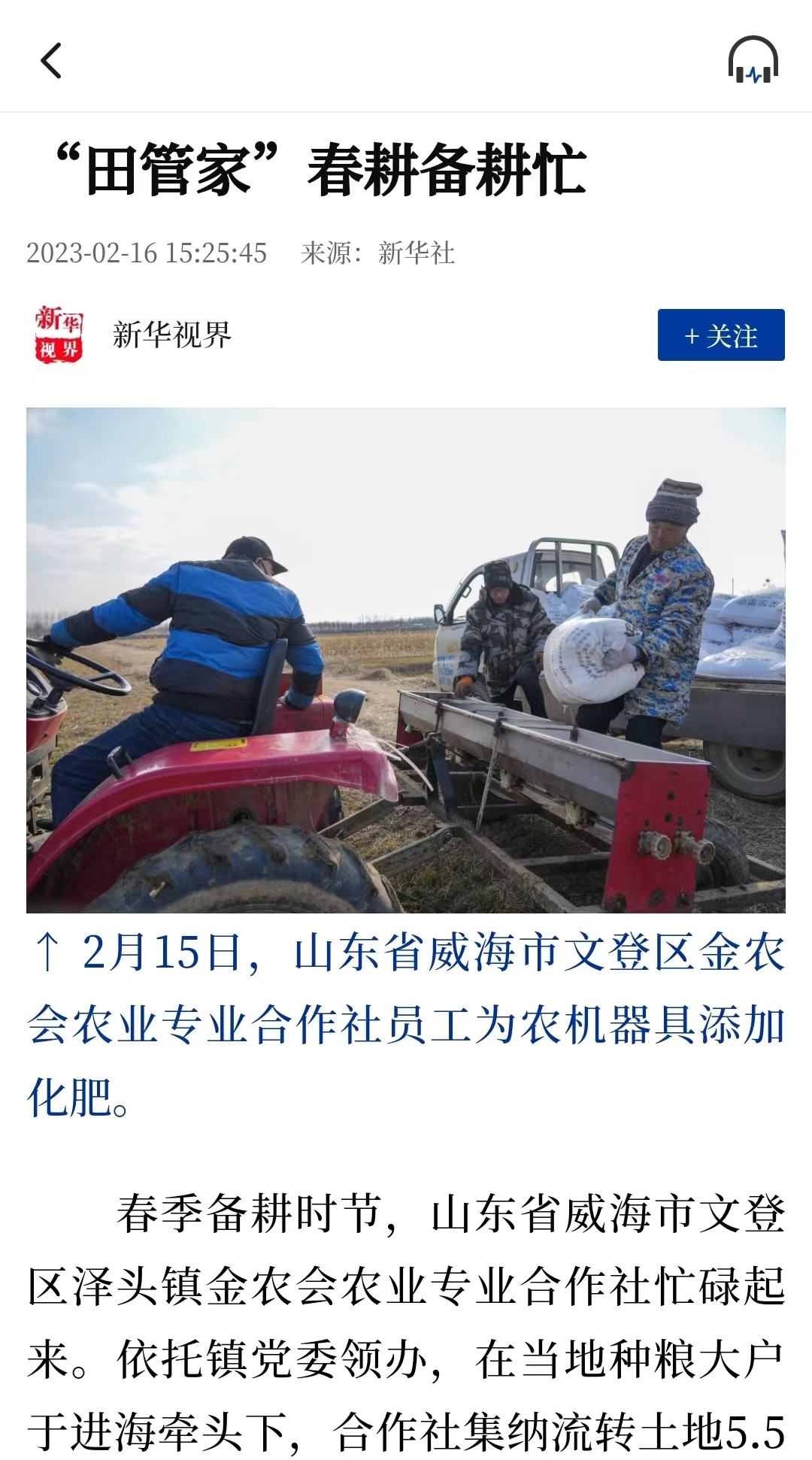 ??????近日,新華社發布稿件《“田管家”春耕備耕忙》,聚焦威海春耕備耕。以下為報道全文:
